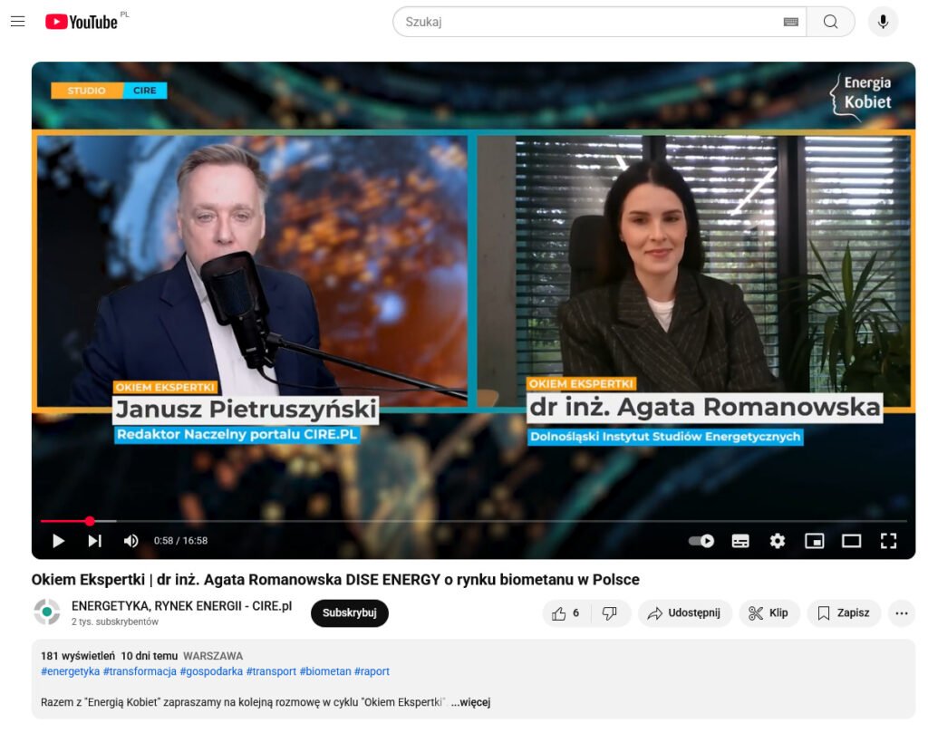Wywiad o potencjale polskiego biometanu z dr. inż. Agatą Romanowską w CIRE.pl