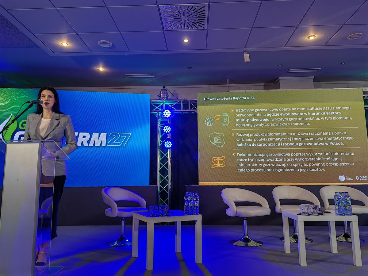 Podczas tegorocznej edycji Green GAZTERMu, mieliśmy okazję zaprezentować pierwsze wnioski z nadchodzącego raportu o polskim biometanie oraz wziąć udział w następującej dyskusji panelowej. Reprezentująca DISE dr inż. Agata Romanowska, podkreśliła wagę koncentrowania wysiłków wokół krajowej debaty o dekarbonizacji polskiego gazownictwa. Choć premiera opracowania oczekiwana jest we wrześniu, autorzy są zgodni, że z perspektywy Polski, szeroko zakrojona produkcja biometanu wydaje się możliwa i racjonalna, biorąc pod uwagę olbrzymi krajowy potencjał, obecną politykę klimatyczną i bezpieczeństwo energetyczne kraju. Ze względu na potrzebę przyspieszania tych procesów i ograniczania kosztów, dobrym rozwiązaniem wydaje się wykorzystanie istniejącej infrastruktury gazowej do zatłaczania i przesyłu biometanu.